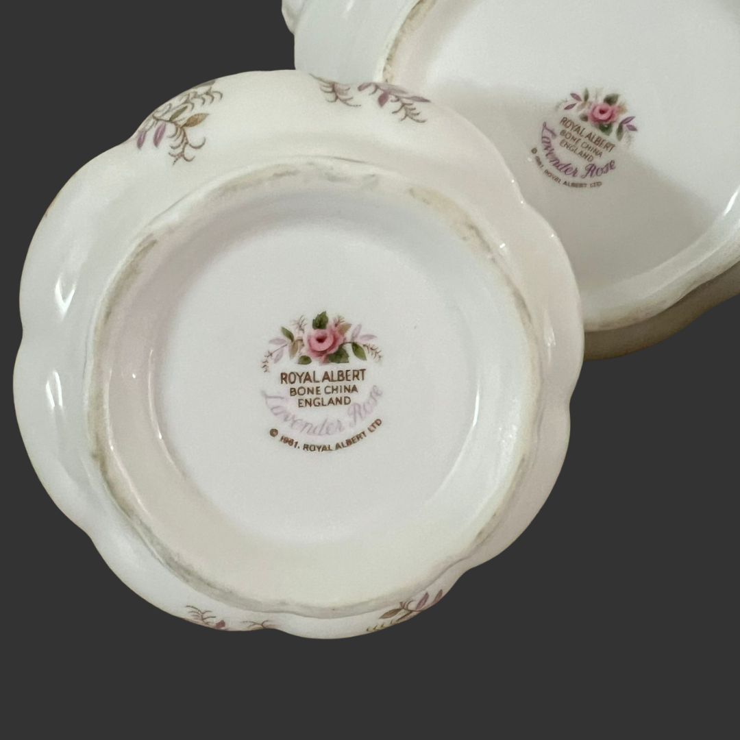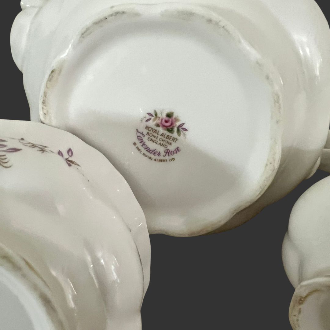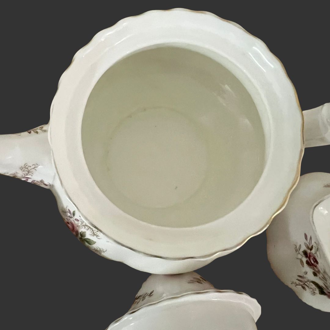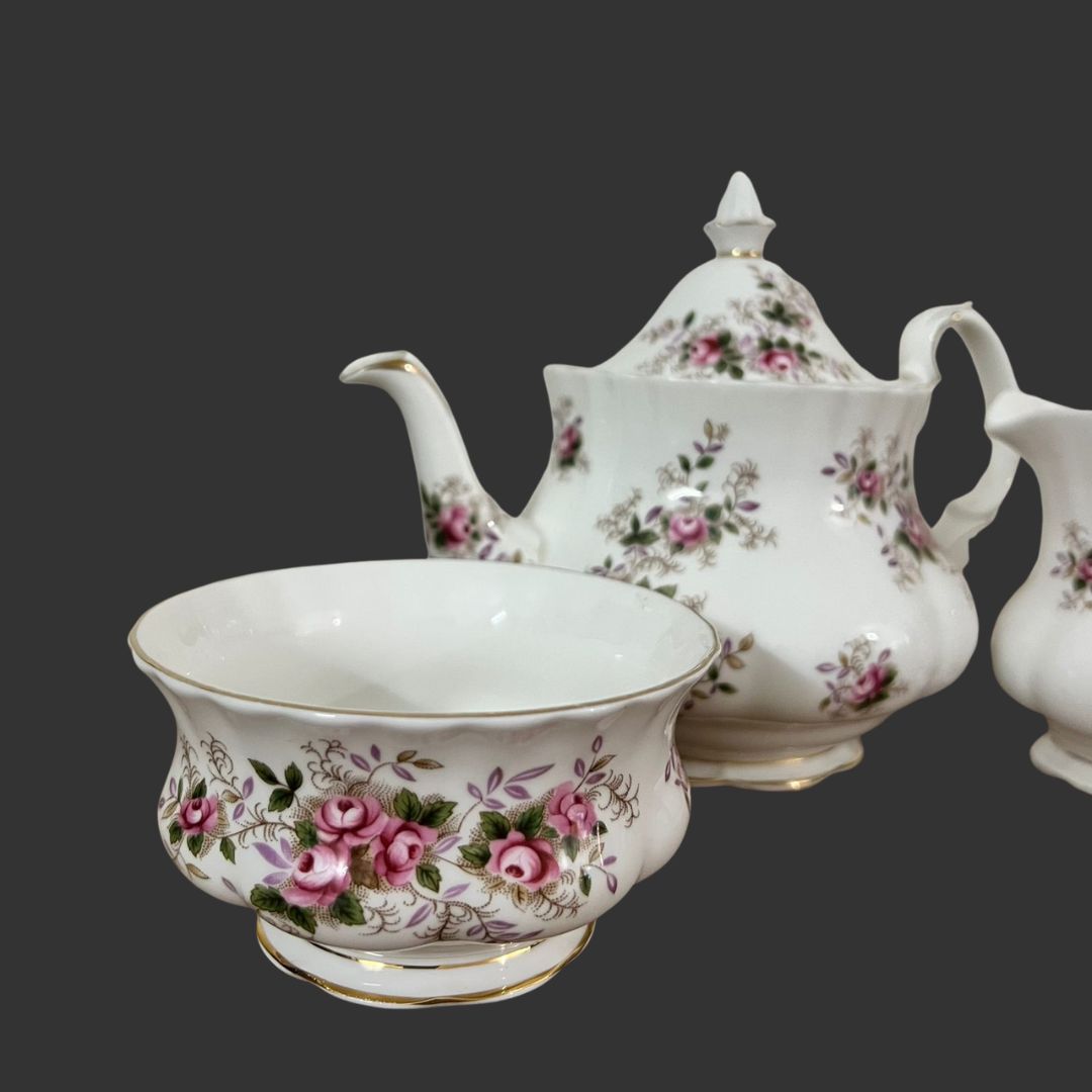 A beautiful Lavender Rose Teapot with matching Sugar bowl and Milk Jug by Royal Albert, English bone china