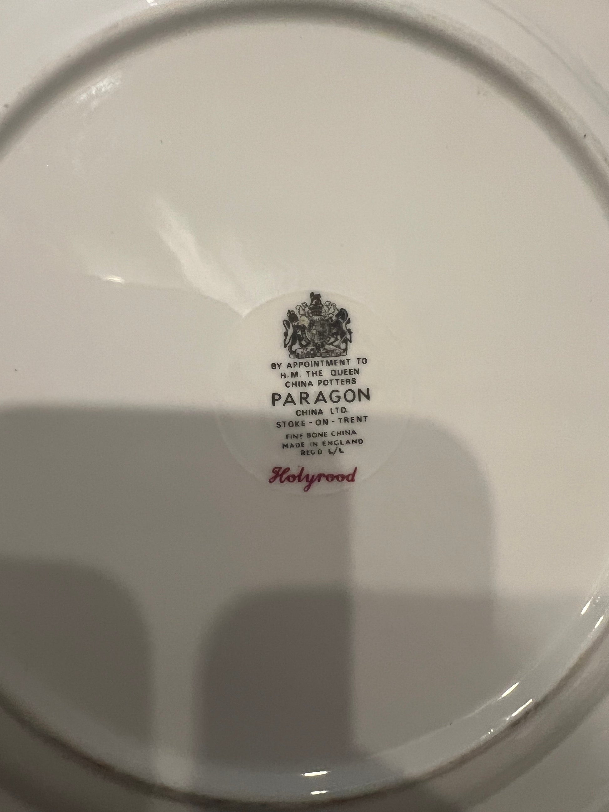A beautiful set of 12 side plates by Paragon, Stoke on Trent. Fine Bone China, Made in England.