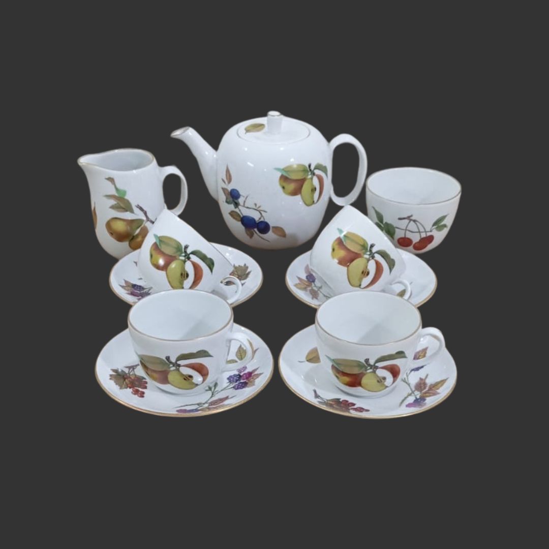 A beautiful tea set in the famous design of “Evesham” by Royal Worcester. Made in England. The set includes: