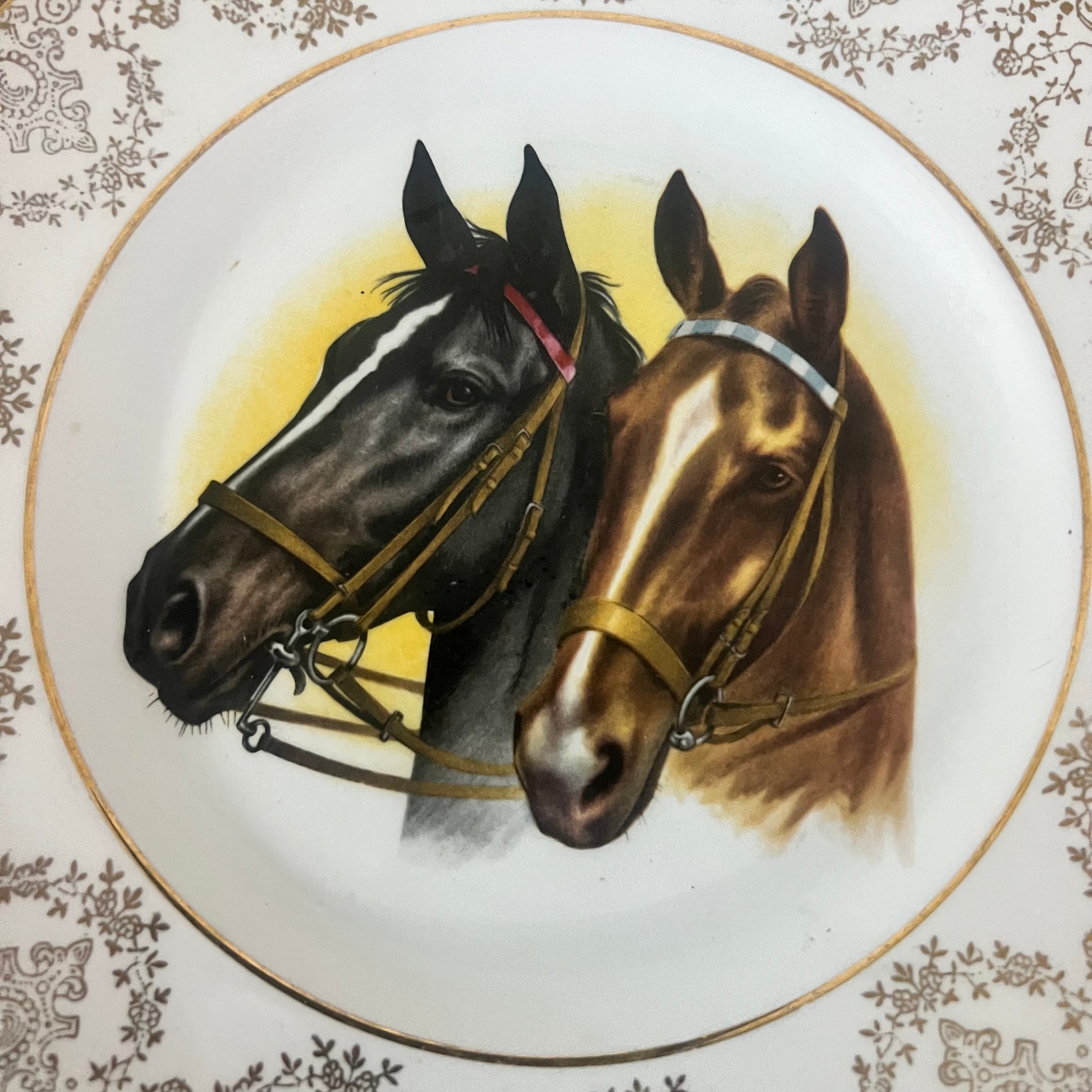 A beautiful wall hanging plate featuring horse portrait. Made by Alfred Meakin, England.