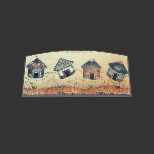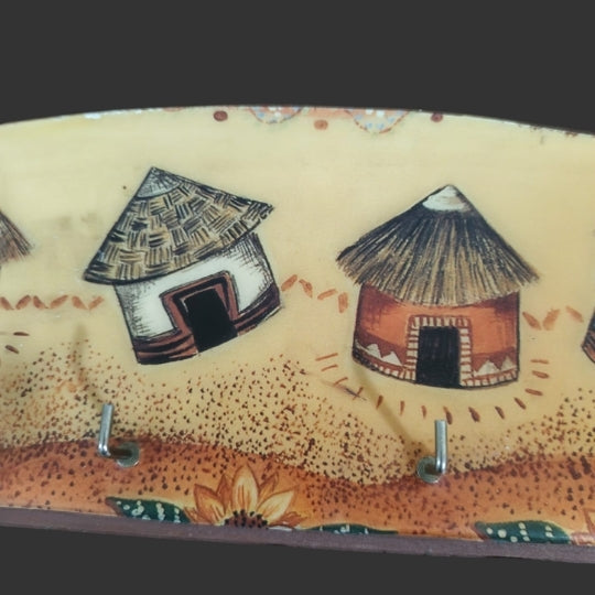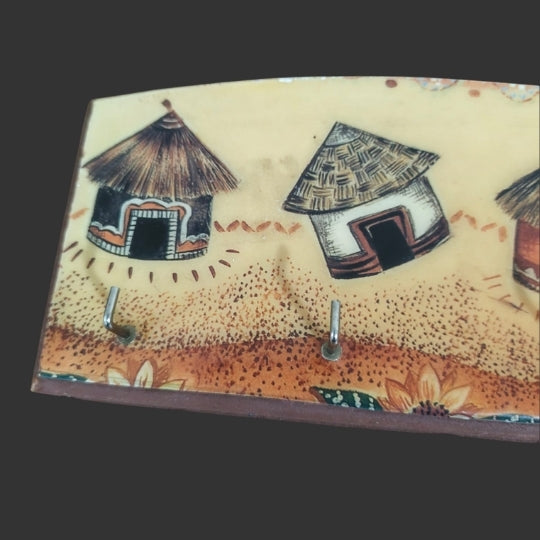 A beautiful "traditional village huts" wall-mounted wooden key holder